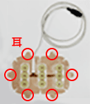 この「耳」は、貼付の位置を決める際の目印となりますので、特に治療を開始したばかりの患者さまはこの「耳」を目印にし、アレイ・レイアウトマップに従ってアレイを貼付してください。ただし、「耳」を含めて肌色の粘着部分は切り取っても治療に問題はないため、もしもとなりのアレイの粘着部分が入り込むような場合は切り取ってください。